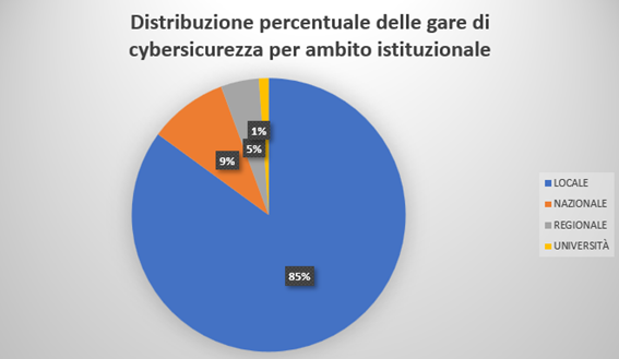 Il 2024 riflette chiaramente questa tendenza: la maggior parte delle gare di cybersicurezza proviene dagli enti locali (85%), a conferma di come la domanda sia capillare sul territorio. Tuttavia, i grandi enti nazionali mantengono un ruolo determinante con poche gare di alto valore, capaci di orientare le strategie del mercato.